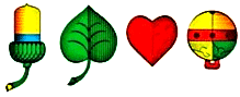 Die 4 Farben beim bayerischen Blatt sind Eichel, Laub, Herz und Schell.